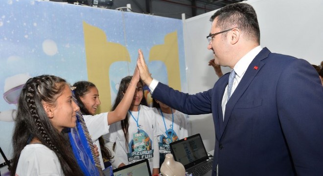 Son olarak konuşan Vali Okay Memiş, 20 ilçede kodlama eğitimine başlandığını söyledi. Cumhuriyet tarihinde görülmeyen kamu kaynağını eğitime aktarıldığını ifade eden Vali Memiş, “Her konuşmamızda şunu vurguluyoruz; çocuklarımızı, gençlerimizi milli ve manevi değerlere uygun yetiştireceğiz. Fakat sadece bu yetmez, eş zamanlı olarak ilimle, irfanla, fenle ve teknolojiye hakim gençler yetiştireceğiz. Yüksek teknolojili ürünler üretemezsek hem savunma sanayimizde hem de yerli ve millî sanayimizde sınıfta kalırız, bu bilinçle hareket ediyoruz. 20 ilçemizde kodlama eğitimini başlattık. Öyle güzel çocuklar keşfediyoruz ki, ailesinin durumu çok iyi değil fakat çocuklarda cevher var. Biz bilgisayar mühendisleri yetiştirmiyoruz, farkındalık eğitimleri veriyoruz. Erzurum’dan bir çocuğumuz çıkar, Türkiye’ye de yeter. Hayal gücü, özgüveni yüksek, teknolojiye ve bilime hakim nesiller yetiştirmek bizim en büyük vazifemiz. Cumhuriyet döneminde görülmediği kadar kamu kaynağı özellikle son yıllarda Sayın Cumhurbaşkanımızın liderliğinde Milli Eğitim Bakanlığına aktarıldı. Nitelik olarak iyi durumdayız nicelik olarak da iyi olmak durumundayız. Önümüzdeki yıl tekli öğretime geçmeyi hedefliyoruz. Çıtayı daha da yükselteceğiz. Gençlerimize değerler eğitimi ve ahlaki eğitimler vererek çok güzel nesiller yetiştirmeyi ümit ediyoruz” dedi.