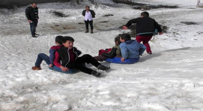 Kar yağışına en çok sevinen yine çocuklar oldu. Çocuklar, kendi yaptıkları kızaklarla kaymanın tadını çıkardı.