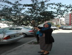 Gürcükapı’da yol ortasında bulunan elma ağacı vatandaşın yoğun ilgisini çekiyor.
